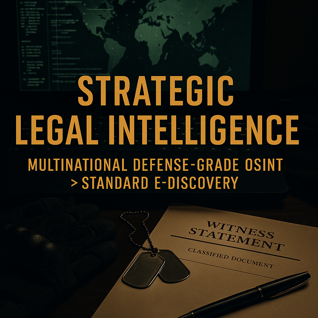 We use defense-level OSINT (Open Source Intelligence) — the same methodology used by military cyber units and intelligence agencies — to uncover people, assets, digital footprints, corporate links, deleted data trails, and witness locations across multiple countries and databases, not just what’s filed in court.